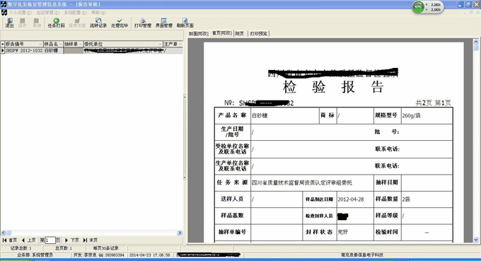 6、报告审核员使用手机或平板审核检验报告。此流程节点为:检验报告审核完成。