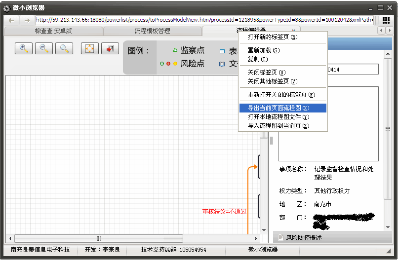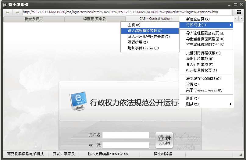 该软件是基于CEF3内核的浏览器,该软件主要是针对四川行权平台没有的功能进行扩展,比如,批量引用流程模板,批量授权,流程图导出、导入、本地预览,自动登录。